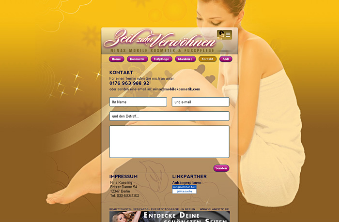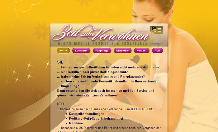 Aber auch Geschäftsfrauen, die oft unter Zeitdruck stehen oder die wenige Freizeit lieber zu hause verbringen wollen, gehören zum Klientel dieses Serviceangebotes. Also ohne Verkehrsstaus und Parkplatzsuche trotzdem bei einer Kosmetikbehandlung dem Alltag entschweben.